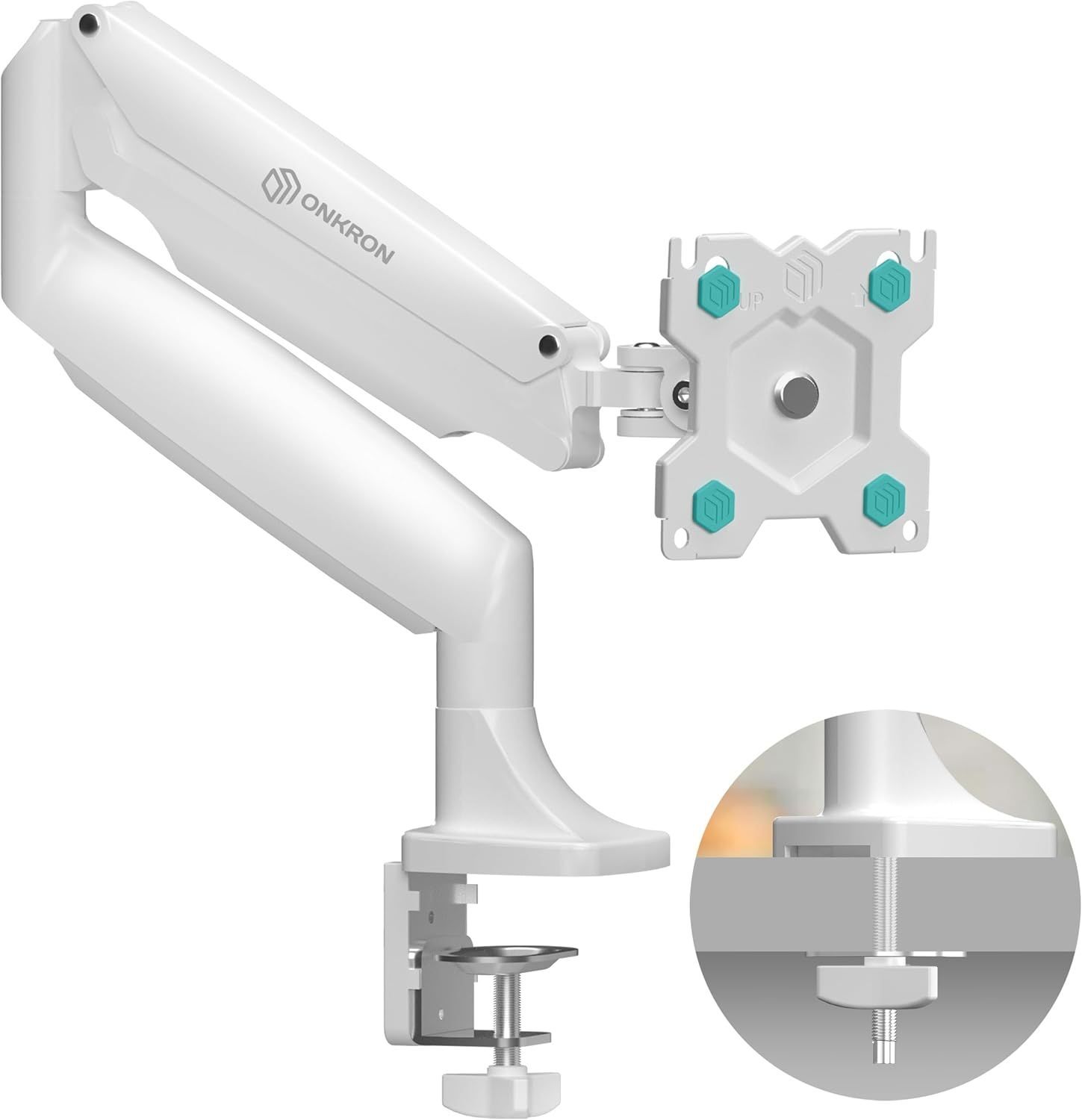 ONKRON Support Ecran PC pour 13 - 55 Pouces, Bras Ecran PC Poids de 25 kg, Support Ecran PC Bureau VESA 75x75 - 100x100, Bras d'Écran Inclinable Pivotant Rotatif, Noir et Blanc G110-BW