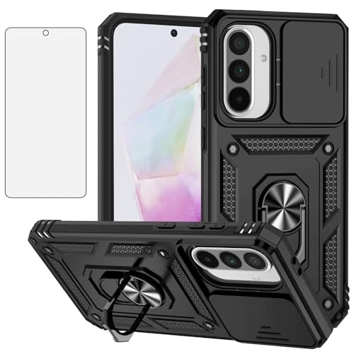 Asuwish Coque pour Samsung Galaxy A36 5G avec Verre Trempé et Magnetique Anneau Support Antichoc Protection Cache Camera A 36 36A LTE Vitre Ecran Objectif Protege Telephone Téléphone Case Femme Noir