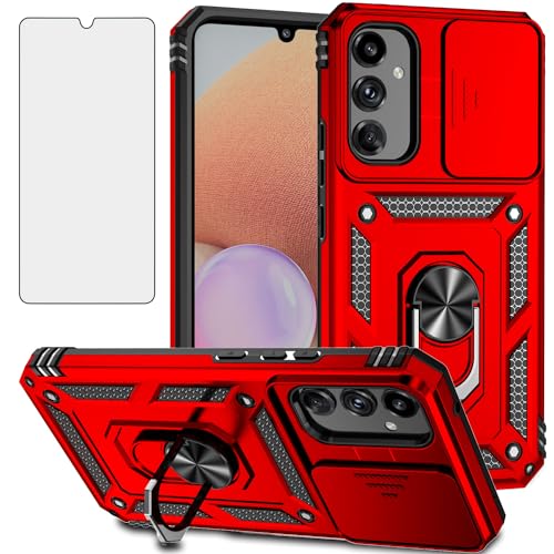 Asuwish Coque pour Samsung Galaxy A34 5G avec Verre Trempé et Magnetique Anneau Support Antichoc Protection Cache Camera A 34 G5 34A S34 A345G A346B Ecran Objectif Telephone Téléphone Case Femme Rouge