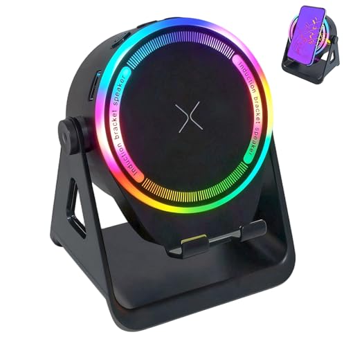 BTFO Enceinte Bluetooth à Induction sans Fil, Rotation à 360° Support de Téléphone avec Capteur Bluetooth sans Fil Éclairage d'Ambiance RGB et Son Surround HD pour Téléphone