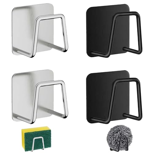 Bogoro Support Éponge Crochet 4 Pcs Support Eponge Porte-Eponges Auto-Adhésifs Acier Inoxydable 304 Porte Eponge Evier Support Eponge Evier Cuisine pour L'organisation Cuisine (Noir)