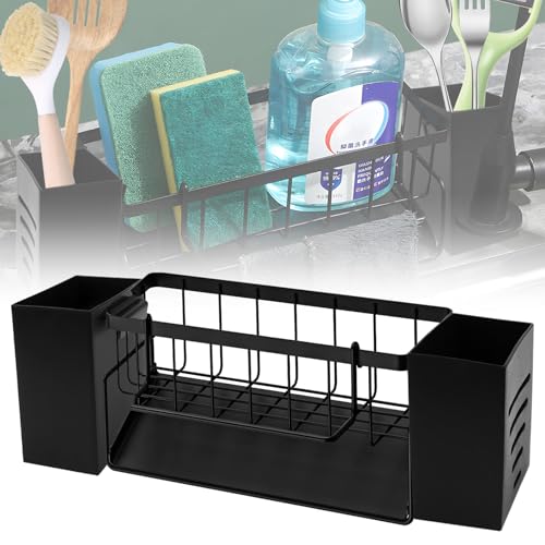 WYTNB Noir Organisateur Evier Cuisine Universel, Amovible Organisateur Évier avec Vidange Matique, Pratique Support Eponge Évier, Multifonctionnel Organisateur Evier pour Cuisine Salle de Bain