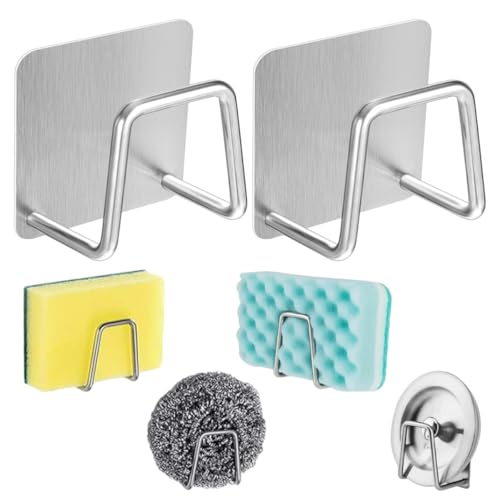 BINQILIN Support pour éPonge 4 Pcs Crochet éPonge Autocollant Porte-éPonge en Acier Inoxydable Support Eponge Evier Cuisine