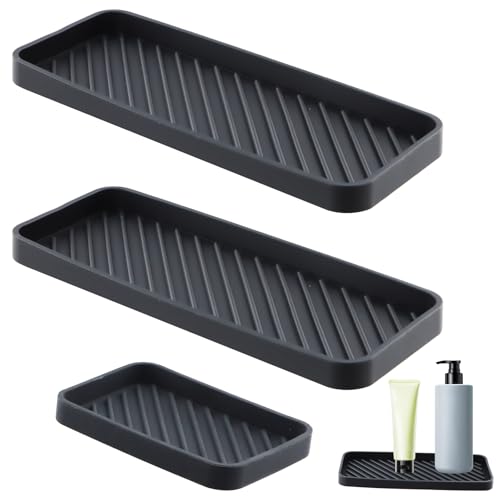 Culinavog Organiseur d'évier en Silicone 23cm x 9cm, 13.5cm x 9cm Antidérapant Support Eponge evier Cuisine, Cuisine Organisateur de Salle de Bain pour éponges, Brosses, Savon (Noir, Lot de 3)