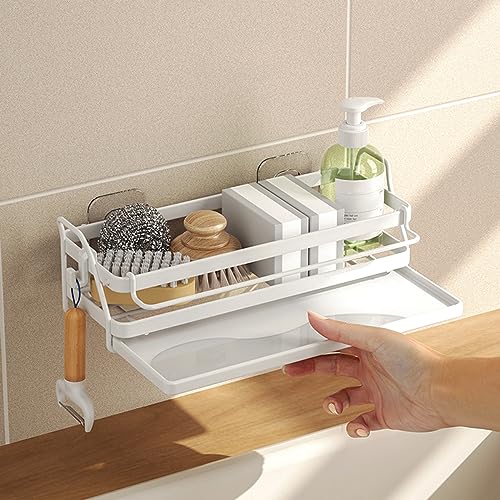 MainPi Porte Eponge evier Cuisine,Organisateur evier Cuisine Mural avec Bac de Vidange,Rangement avec Porte-Serviettes,Support Eponge avec Adhésif (Blanc)