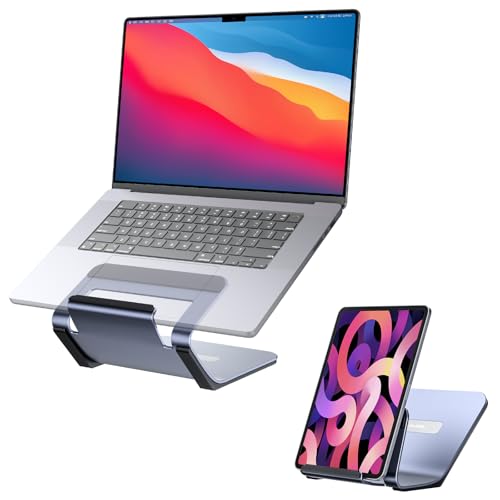 JSAUX Support pour ordinateur portable pour bureau, support d'ordinateur 2 en 1 en aluminium et support de tablette, support ergonomique pour ordinateur portable compatible avec MacBook Air Pro, iPad