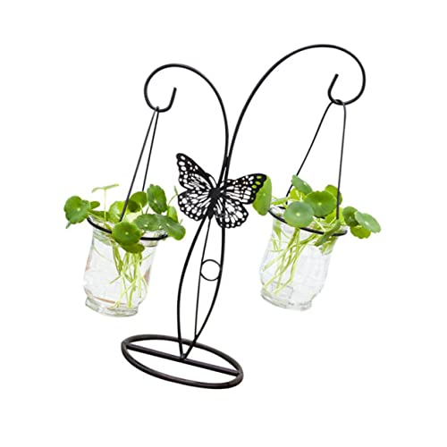 Abaodam Vase de Décoration de Bureau Verre pour Plante Hydroponique Contenant Suspendu Fer Forgé Noir Support Stable pour Arrangement Floral et Plantation Eau de Bouteilles Suspendues