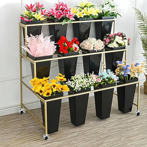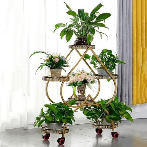Support De Plantes Fleurs en Fer Forgé, Supports D'affichage Pots Multiples Métal avec Roues pour Jardinière Porte Plante(Gold)