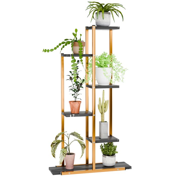 Porte Plante Fer Forgé Étagère Plante avec 6 Tablettes Support Pot de Fleurs pour Balcon Jardin Terrasse 60x20x106cm