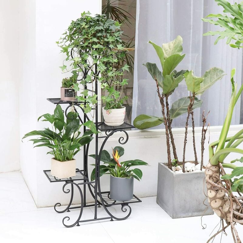 Wyctin - Hofuton Étagère Plante Intérieure Porte Plantes Fer Forgé Extérieur Intérieur de 5 Niveaux Support Pot de Fleurs Intérieur Idéal pour Maison