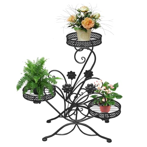 Cre Cra Étagère pour plantes d'intérieur, 3 Niveaux Support Plantes Interieur, Support fleur,etagere de Fleurs metal,Étagère pour Pots de Fleurs,etagere à plantes balcon,porte plante fer forgé