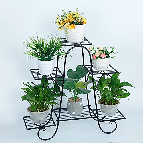6 Couches en Métal Forgé Support de Fleur Intérieur Multi-étages Support Plancher Balcon Pot Étagères pour la Maison, Jardin, Patio,Black