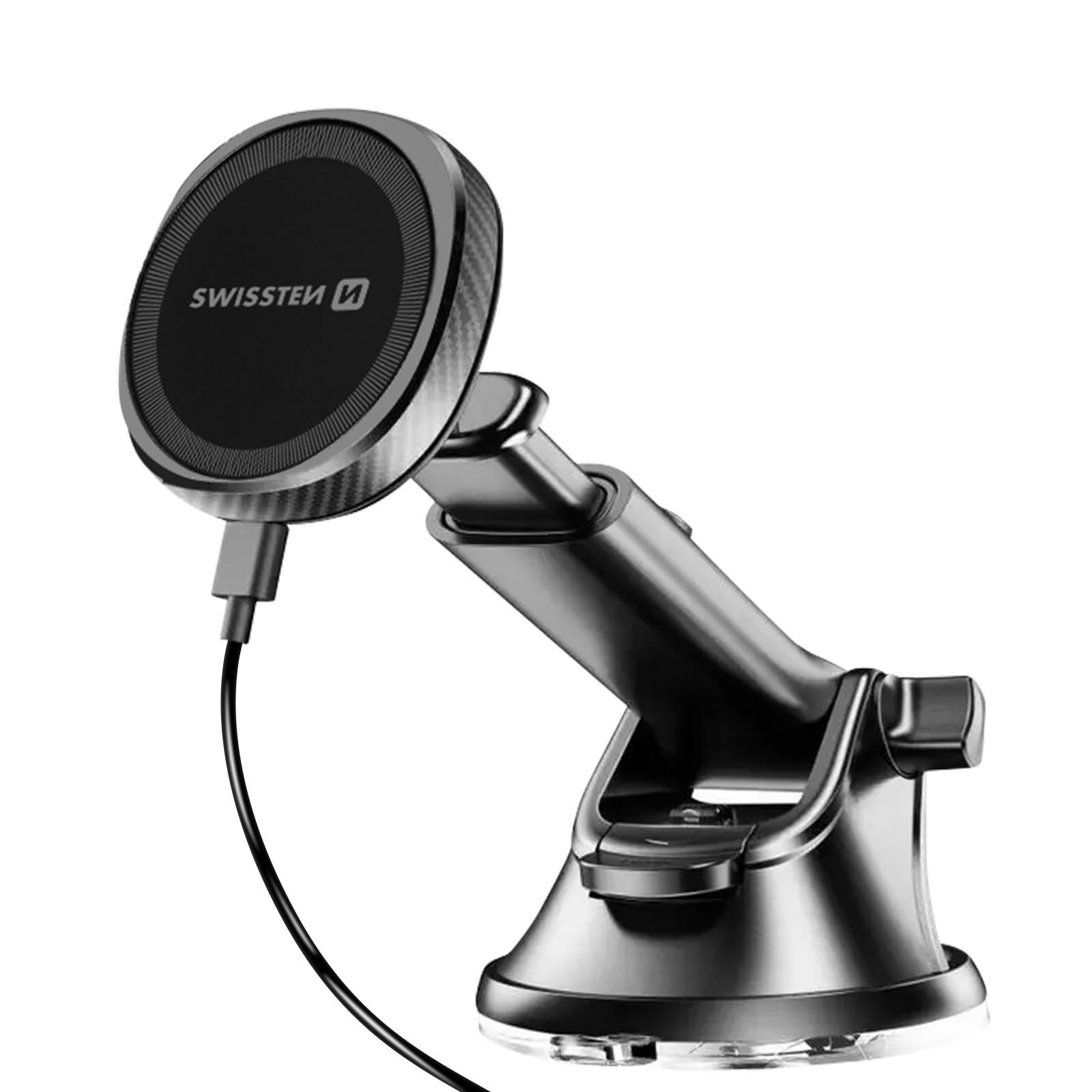 Support Voiture iPhone Charge rapide 15W Fixation ventouse Swissten Noir