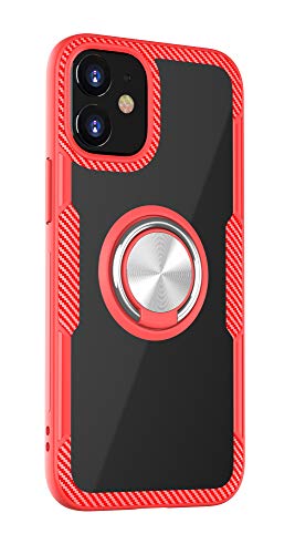 Compatible avec Apple iPhone 12 Mini Coque, Anneau de Support Téléphone Voiture Magnétique Bague 360 Étui de Protection (Rouge)