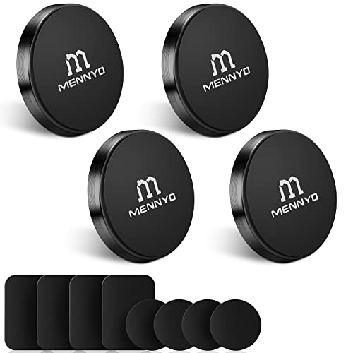 MENNYO Support téléphone Voiture magnétique, Lot de 4 Aimant de téléphone avec Plaques de métal Collé sur Tableau de Bord | Mur Aimant Autocollant Compatible avec iPhone Samsung Galaxy/Note Huawei