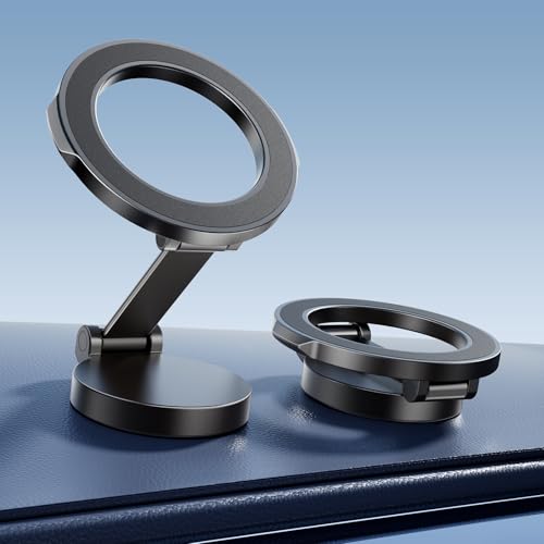 GlasFlength Support Telephone Voiture Magnetique pour MagSafe, Porte Téléphone Voiture Aimanté Aimant Telephone Voiture Pliable Rotation à 360° Support Voiture pour iPhone 15 14 13 12 et étui MagSafe