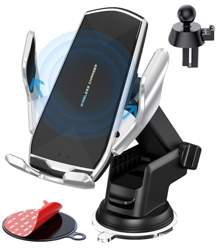 ISEYOU Support Telephone Voiture Induction, 15W [Serrage Automatique] Chargeur Induction Voiture sans Fil avec QC 3.0 Chargeur Adaptateur Rapide Compatible avec iPhone 17 16 15 Pro Max, Galaxy S24/S23