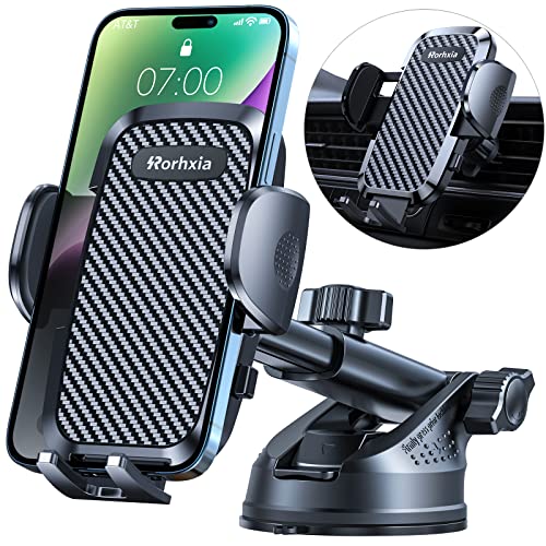 Rorhxia Support de téléphone pour Voiture [Ventouse la Plus Stable et Pratique] 3 en 1 pour Tableau de Bord, Grille d'aération et Pare-Brise - Convient pour iPhone 14, 13, 12 Pro Max, Samsung S23,
