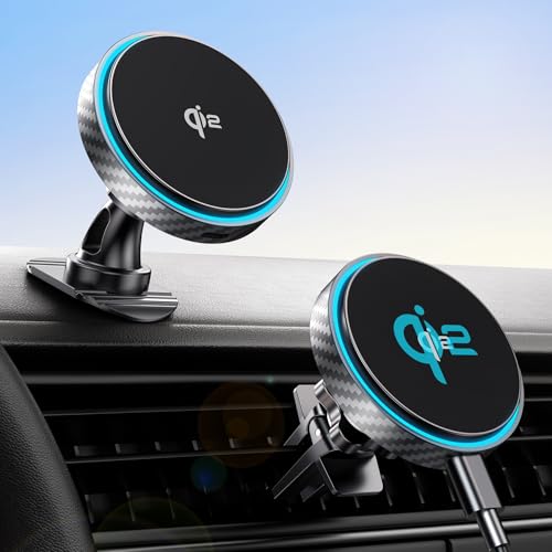 Support de charge magnétique pour voiture Magsafe [Certifié Qi2 - 15W], Rotation à 360° [Tableau de bord & Ventilation] Support de charge sans fil Compatible avec les séries iPhone 17 16 15 14 13 12