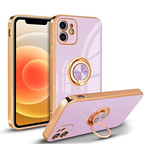 Newseego Coque Compatible avec iPhone 12, Coque en Silicone Souple Galvanisé, Support de Bague Rotatif Support de Voiture Magnétique Housse Protection