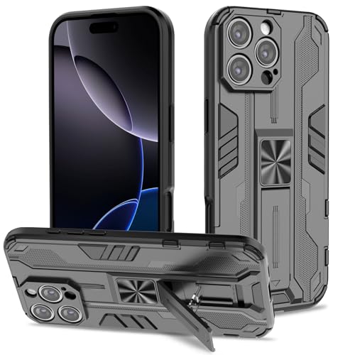 Btstring Coque pour iPhone 16 Pro Max, Outdoor Antichoc de Qualité Militaire Coque avec Béquille Anti Rayure, Compatible Support de Voiture Magnétique, Noir