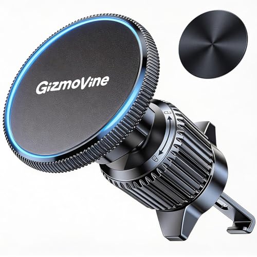 GizmoVine Support Téléphone Voiture MagSafe avec 20 Aimants N52 Puissants, [Charge Max 3KG] Porte Téléphone Voiture Magnétique pour Grille d'Aération, Rotation 360° en Alliage For iPhone 12-17/Android