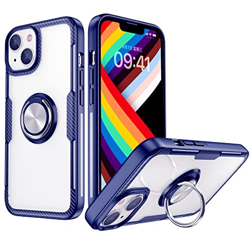 Compatible avec Apple iPhone 13 Coque, Anneau de Support Téléphone Voiture Magnétique Bague 360 Étui de Protection (Bleu Marine)