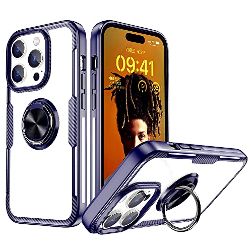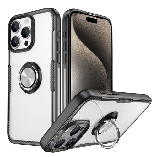 SORAKA Coque Transparent pour iPhone 15 Pro avec Anneau et Plaque métallique pour Support Téléphone Voiture Magnétique,Transparent Hard Etui+Pare-Chocs Silicone