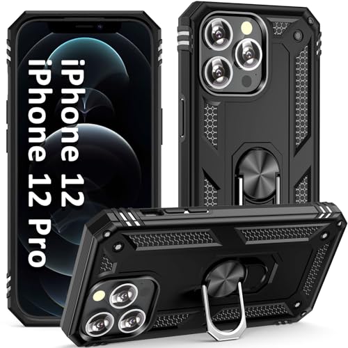 ADDIT Coque de téléphone pour iPhone 12/iPhone 12 Pro, Coque de Protection de qualité Militaire pour iPhone 12 Pro avec Anneau de Support de Voiture pour iPhone 12/iPhone 12 Pro 6,1", Noir