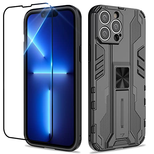 Btstring Coque pour iPhone 13 Pro avec Verre Trempé, Outdoor Antichoc de Qualité Militaire Coque avec Béquille Anti Rayure, Compatible Support de Voiture Magnétique