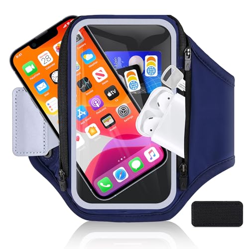 Razobws 6,8'' Brassard de Sport avec Poche Zippée pour clé de Voiture Écouteurs, Support de Téléphone Portable pour iPhone 16 15 14 13 12 Pro Max Galaxy S24 avec Sac pour écouteurs pour la Course