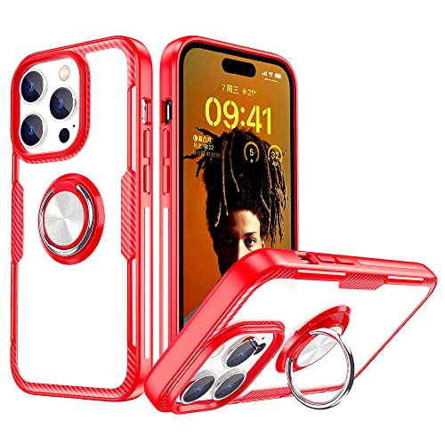 SORAKA Coque Transparent pour iPhone 14 Pro avec Anneau et Plaque métallique pour Support Téléphone Voiture Magnétique,Transparent Hard Etui+Pare-Chocs Silicone