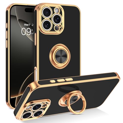 BENTOBEN Coque pour iPhone 14 Pro Max, Fine et légère avec Anneau de Support à 360 °, Support de Voiture résistant aux Chocs, Coque de Protection antidérapante pour iPhone 14 Pro Max 6,7", Noir/doré