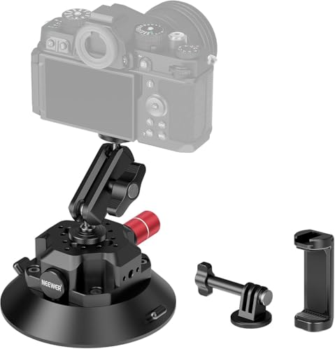 NEEWER Support Caméra Ventouse 3",Compatible avec Arri 1/4" Trous, Support de Voiture Quick Release+ de Téléphone, Adaptateur Action Cam Compatible avec iPhone GoPro DJI Insta360, CA104