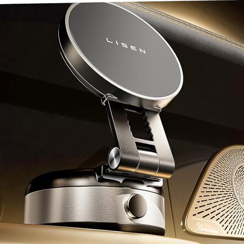 LISEN [Electronique Ventouse Support Voiture Téléphone Magsafe, [78+LBS Adsorption Automatique] Support Téléphone Portable Magnétique pour iPhone 16 Pro Max 15 14 13 12