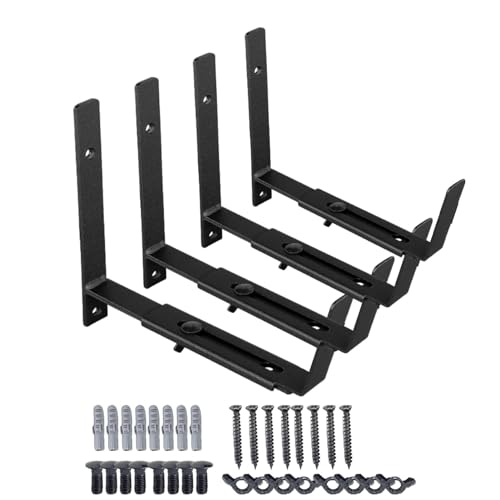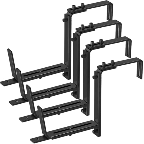 Wilafury Supports de boîte de jardinière, Support réglable Robuste, Supports boîte fenêtre en métal Solide pour Garde-Corps Mural Balcon Jardin 4 pièces