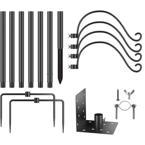 Protoence Poteau pour Maison d'oiseaux,Kit de Support Réglable en Hauteur 193 Cm - Support Mangeoire Colibris pour Jardin Pelouse Fleurs,Station Météo Jardinière Nid Pelouse