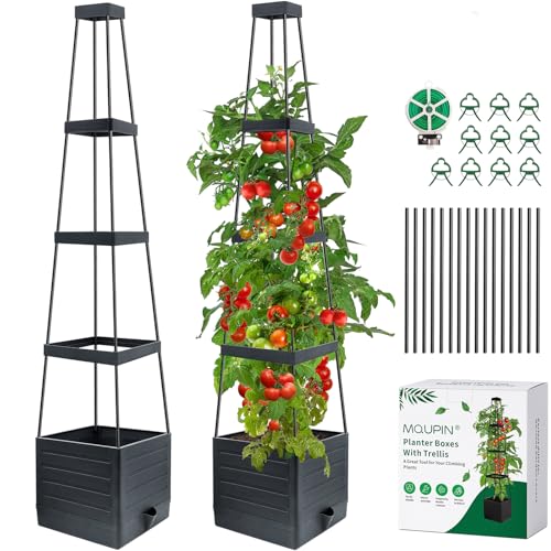 MQUPIN Lot de 2 Jardinière Surélevée avec Treillis,145cm Arrosage Automatique Jardiniere Tomate,Tuteur Tomate,pour Plantes grimpantes,Plantes grimpantes,Auto-arrosage,Support réglable pour vign