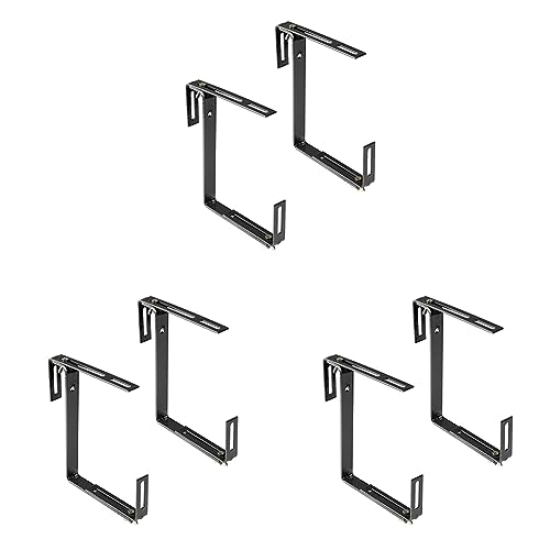 4PCS Support pour Jardinière Couleur Noir, Support de Bac à Fleurs Robuste et Réglable en Largeur, Accroche Jardinière en Métal pour Bails de Garde-Corps Fenêtres Jardins Clôtures et Balcons