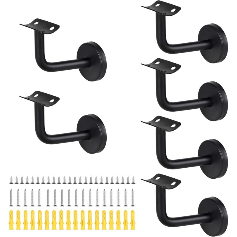 Lot de 5 Support Main Courante Inox - Murale Supports de Main Courante pour Escalier Exterieur Intérieur, Rampe Escalier Bois, Rail D'escalier