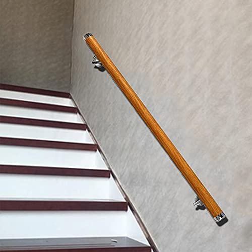 Mains courantes en Bois de 1 m/2 m/3 m/4 m/5 m/6 m pour escaliers intérieurs, Main Courante d'escalier antidérapante pour Personnes âgées, Barre d'appui Murale avec Support en métal (Taille