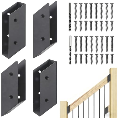Vilgftyiet Connecteur de support de garde-corps pour angle d'escalier à 40°, support en acier inoxydable noir pour poteau en bois de 3,8 x 8,9 cm, connexion de main courante pour escaliers extérieurs
