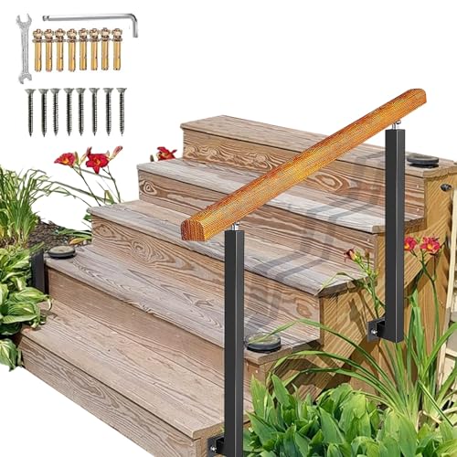 Rampe d'escalier extérieure, s'adapte aux rampes en Bois de 3 à 4 marches avec 2 poteaux en Fer forgé, Main Courante de Transition pour Porche de Jardin, Tige de Support de sécurité à Angle