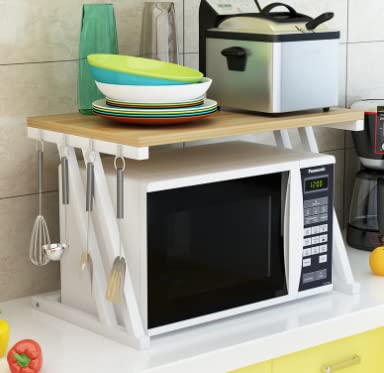 LANTUS Étagère stable en bois pour four à micro-ondes avec crochets, support de four, grille à rôtir, étagère de plan de travail pour micro-ondes, étagère de rangement de comptoir de cuisine