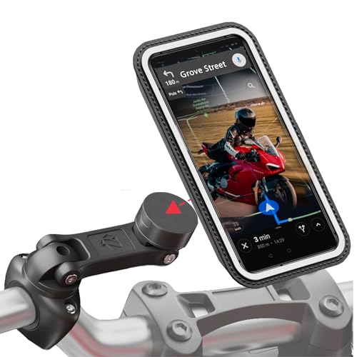 Shapeheart Support Téléphone Moto Sportive Demi-Guidon - GPS dans l'Axe du Regard - Pochette Étanche XL Tactile - Colonne de Direction, Guidon Bracelet - Housse Imperméable et Amovible