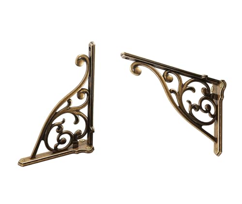 Lot de 2 supports solides robustes de 20,3 cm en laiton antique, support de panneau mural à angle droit, support d'étagère décoratif, vintage robuste, support mural DIY – Matériel d'étagère inclus