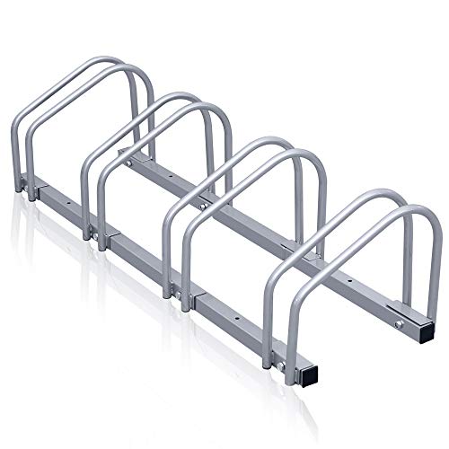 HOMCOM Râtelier 4 vélos range-vélos support de rangement pneu 65 mm sol ou mural pour VTT enfants BMX 110 x 33 x 27 cm acier argent