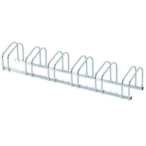 HOMCOM Râtelier 6 vélos range-vélos support de rangement pneu 65 mm sol ou mural pour VTT enfants BMX 179 x 33 x 27 cm acier argent