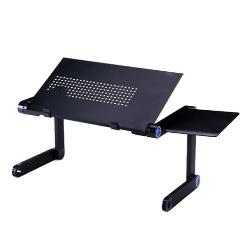 Support Ordinateur Portable Lit, Table de Lit avec Refroidisseur PC Portable, Support pour Tablette, Lapdesk Pliable,Réglable en Hauteur et Angle-60 * 40 * 27-40cm (Lampe de Table) Noir
