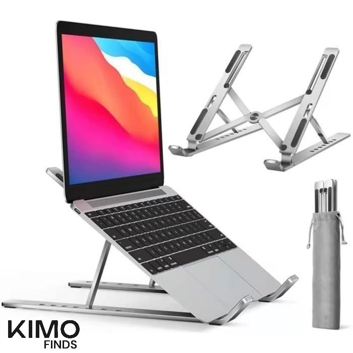 Support Ordinateur Portable - Aluminium - Ventilé - Antidérapant - Inclinable - Gris